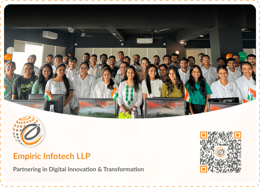 Unlock endless possibilities for your business with Empiric Infotech LLP - a leading web and mobile app development company. Our 75+ experienced IT professionals, with over 8 years of expertise, create bespoke web solutions, intuitive mobile apps, and award-winning UI/UX design across all industries like e-commerce, healthcare, real estate, banking & finance, education, manufacturing, logistics & supply chain, travel, hospitality, and sports, media, government – and beyond.